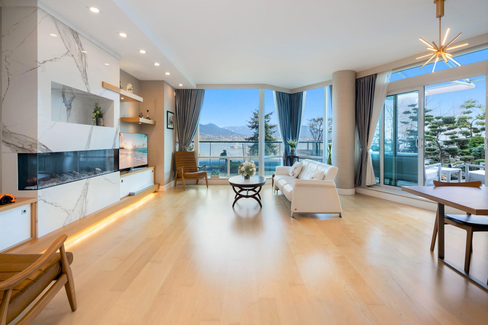 A truly extraordinary oceanfront home at Escala where sophistication & natural beauty intertwine to create an unparalleled living experience. A/C, 9'6 ceiling, open & bright w/ beautiful morning sunshine. Fully renovated in 2019, this exquisite home boasts luxury finishes, all Miele appliances (steam & convection ovens, touch-screen wine fridge, fridge, etc) engineered maple floor, Silestone countertops, Nu-heat floors in all baths/powder, electric fireplace, customized cabinetry w/ lots of built-in storage. A 1,700-sf, remarkable Japanese-style rooftop garden w/ very minimal maintenance (no lawn) was created by a well-known, lifelong gardening enthusiast. Come home to this urban oasis, unwind on the patio &be enveloped by a sense of peace & tranquility. 24/7 concierge, indoor pool & more!