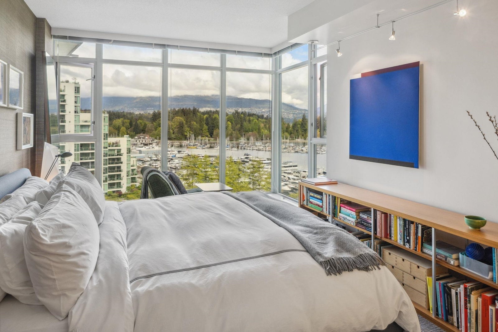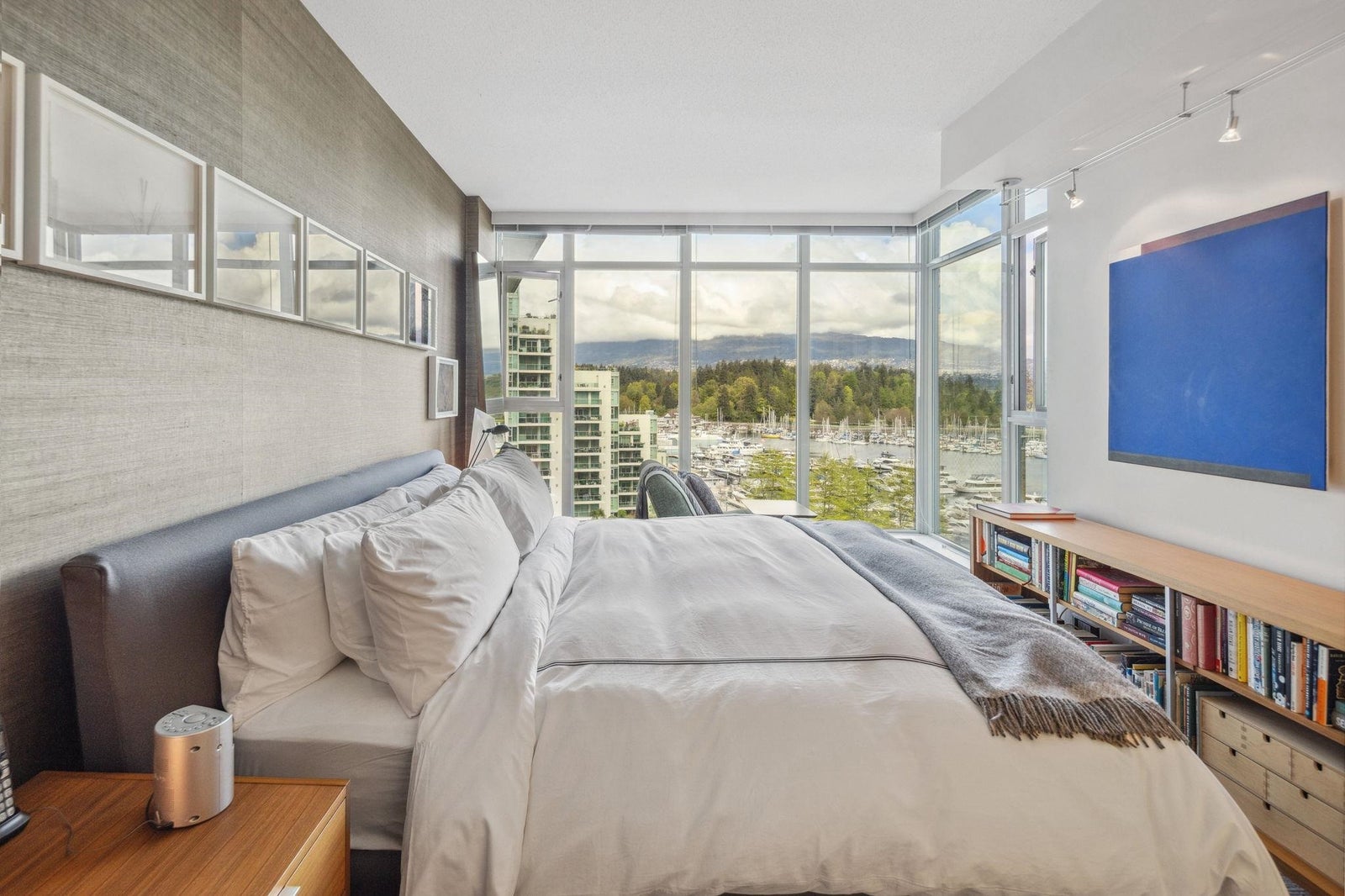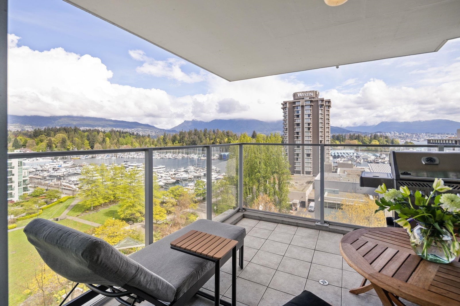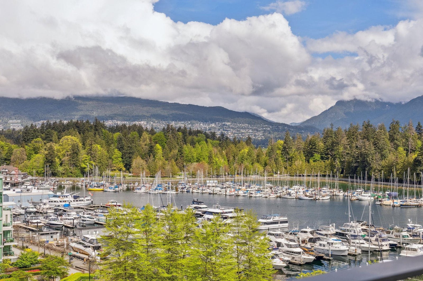 Nestled in Bayshore Park, this beautifully upgraded home with A/C offers stunning views of ocean, northshore mountains, Stanley Park and Coal Harbour Marina; quiet and exclusive. Extensively renovated during 2017-2019 with a gourmet kitchen, engineering hardwood floors, luxurious primary ensuite, powder room, office, & upgraded lighting & laundry machines, built-in shelves. Open floor plan featuring 2 bedrooms (both w/ ensuites), 2.5 baths & a large den converted into a beautiful office, and an in-suite storage. 2 parking + storage locker + bike storage. Meticulously maintained, ready to move in! 24/7 concierge, gym, sauna, meeting room, lush landscaping. Steps from the seawall, restaurants, cafes and Stanley Park. Open House: Thursday, Aug 1, 4-6 PM and Sat, Aug 3, 1-3 PM.