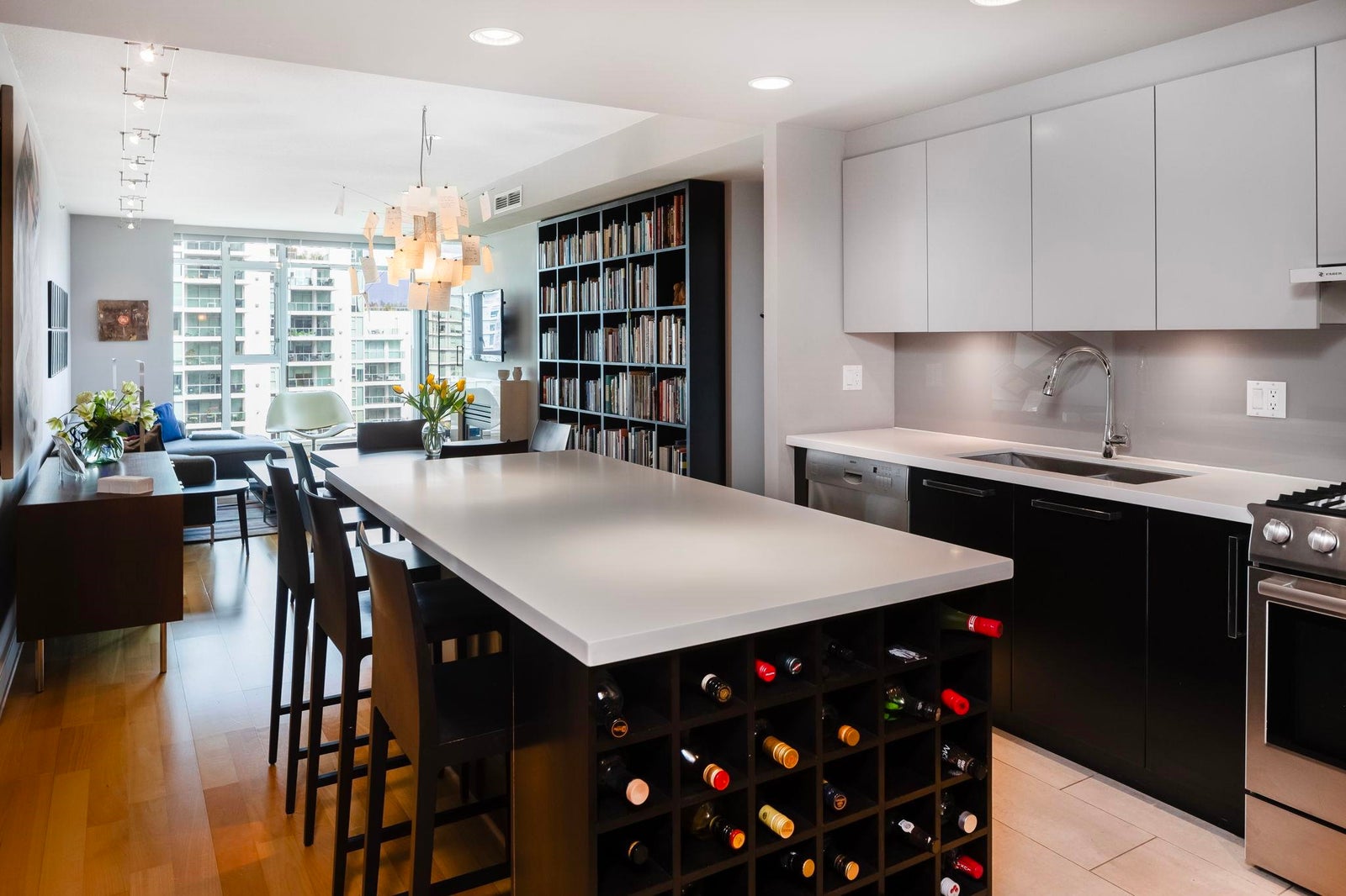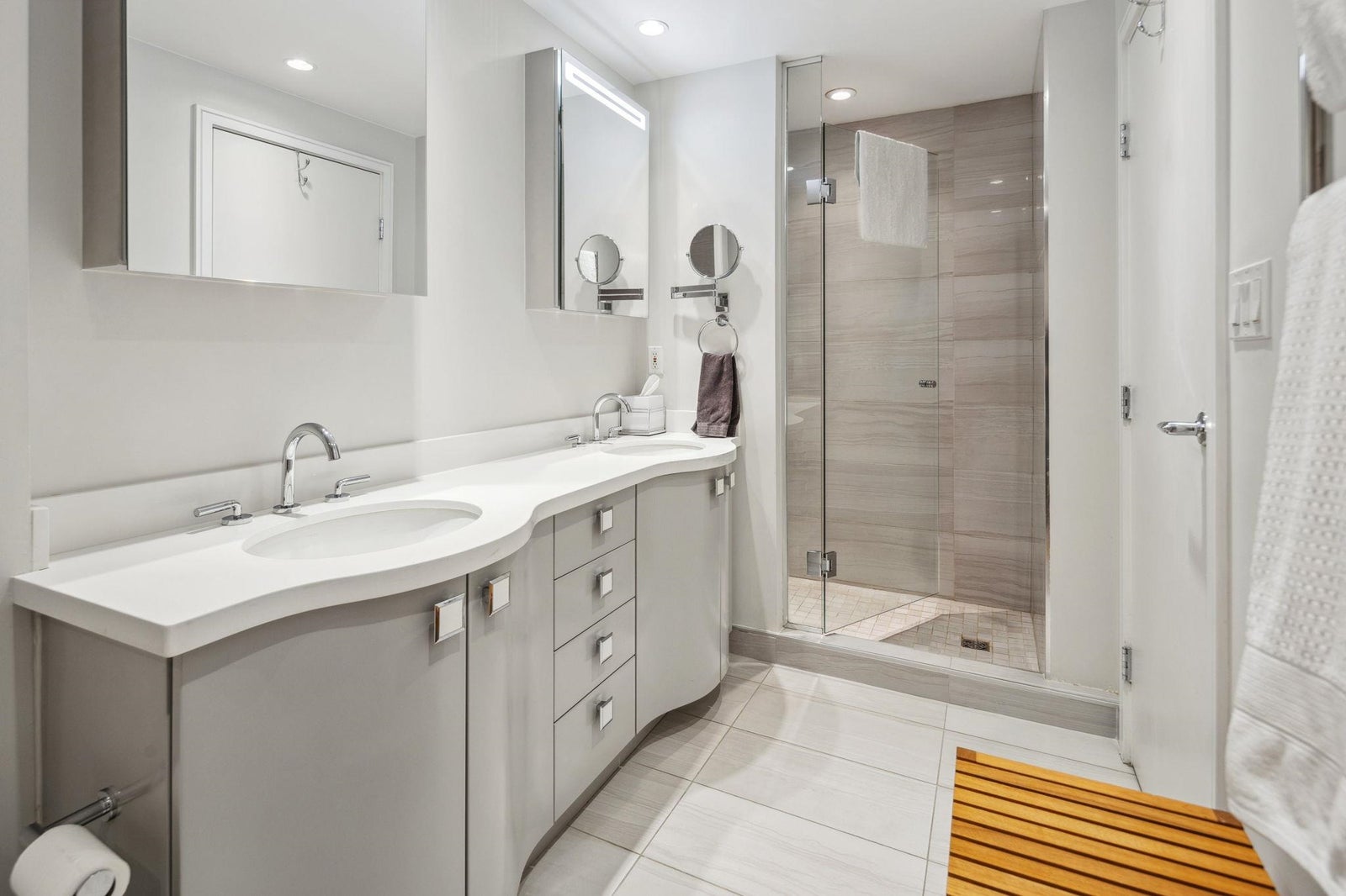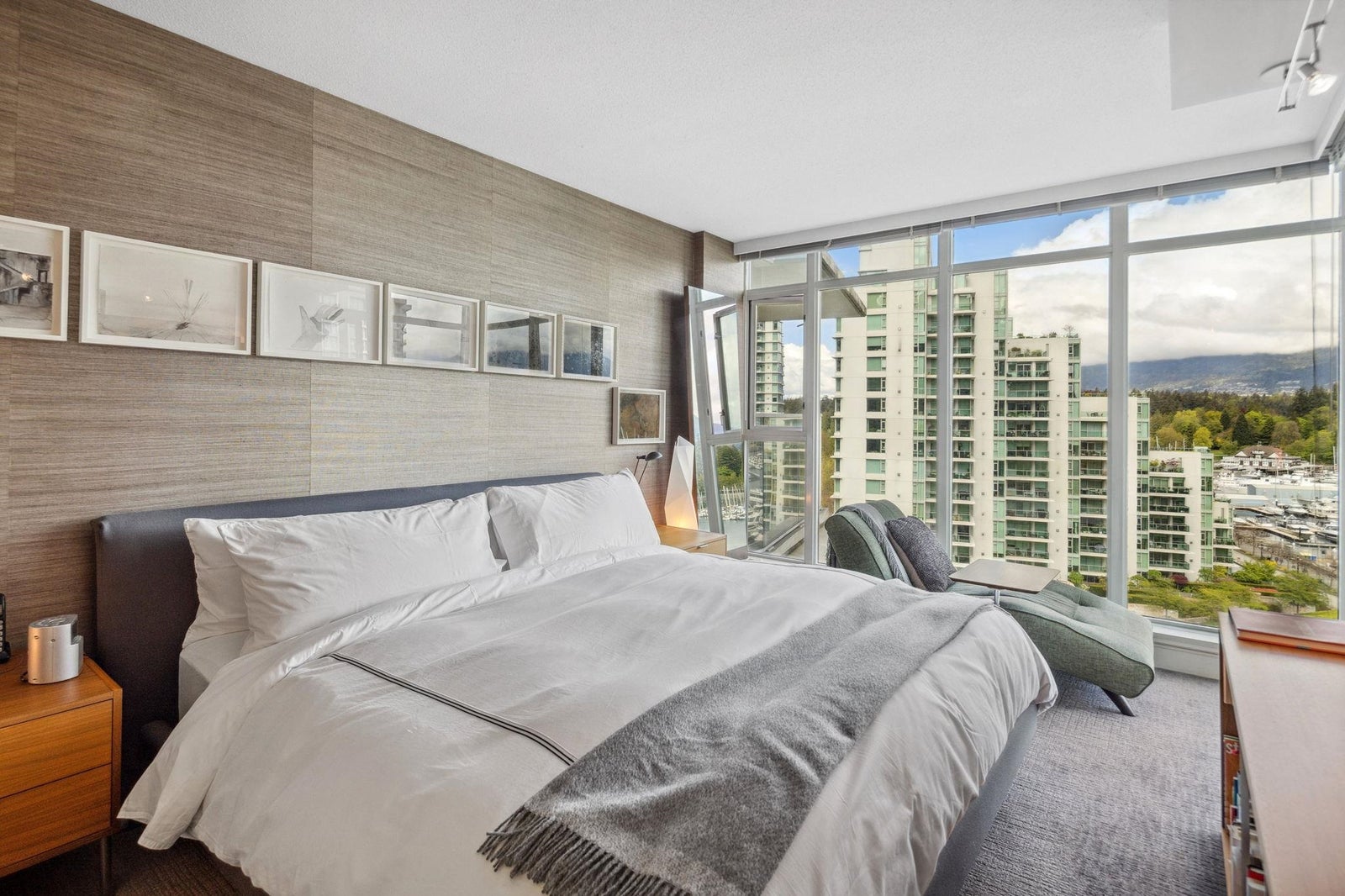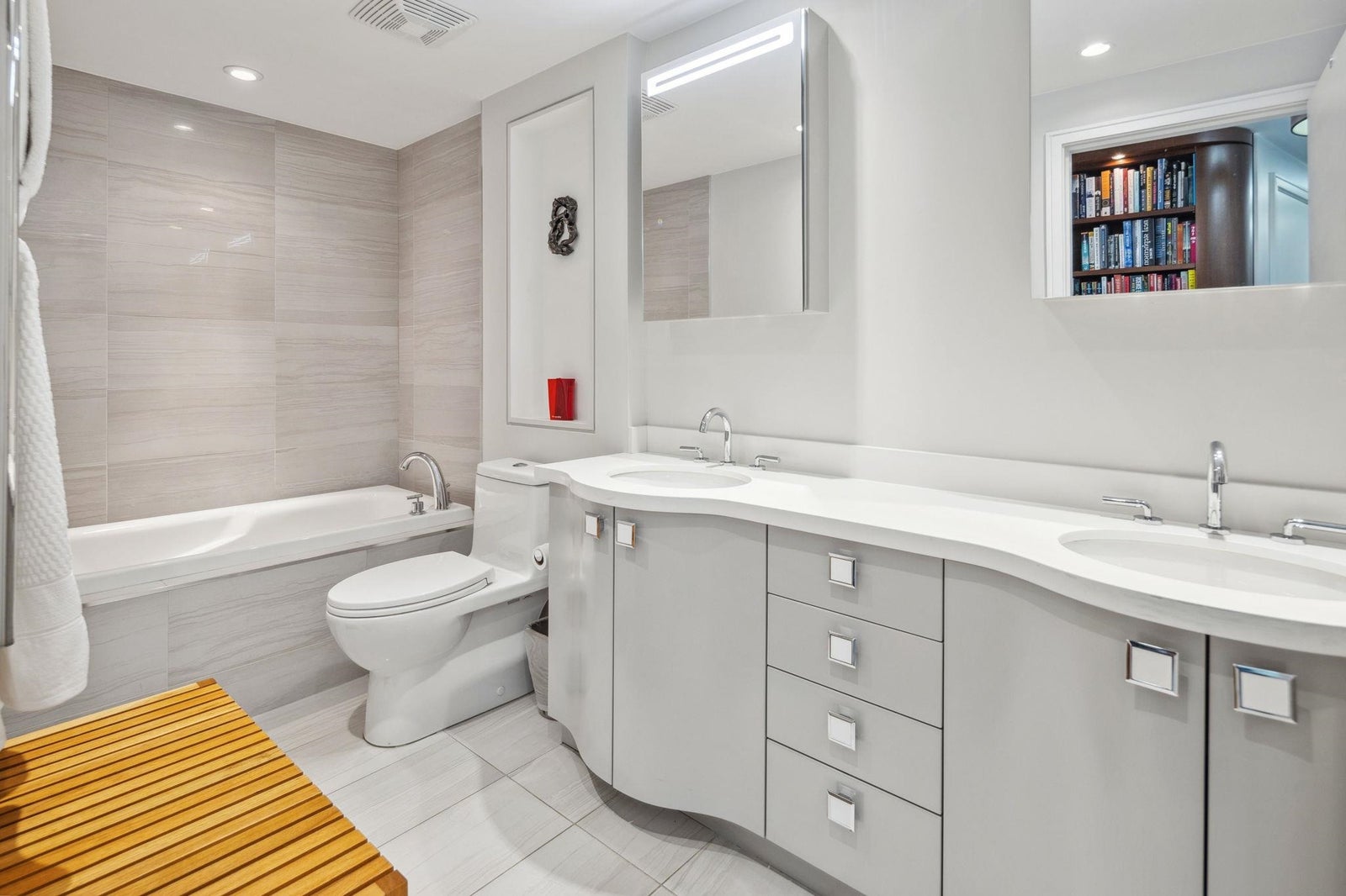 Nestled in Bayshore Park, this beautifully upgraded home with A/C offers stunning views of ocean, northshore mountains, Stanley Park and Coal Harbour Marina; quiet and exclusive. Extensively renovated during 2017-2019 with a gourmet kitchen, engineering hardwood floors, luxurious primary ensuite, powder room, office, & upgraded lighting & laundry machines, built-in shelves. Open floor plan featuring 2 bedrooms (both w/ ensuites), 2.5 baths & a large den converted into a beautiful office, and an in-suite storage. 2 parking + storage locker + bike storage. Meticulously maintained, ready to move in! 24/7 concierge, gym, sauna, meeting room, lush landscaping. Steps from the seawall, restaurants, cafes and Stanley Park. Open House: Thursday, Aug 1, 4-6 PM and Sat, Aug 3, 1-3 PM.