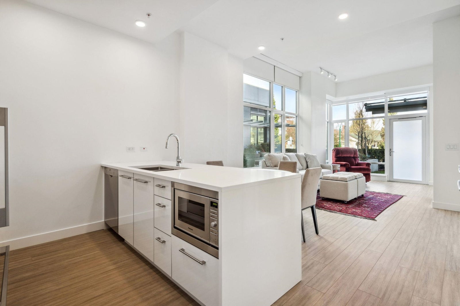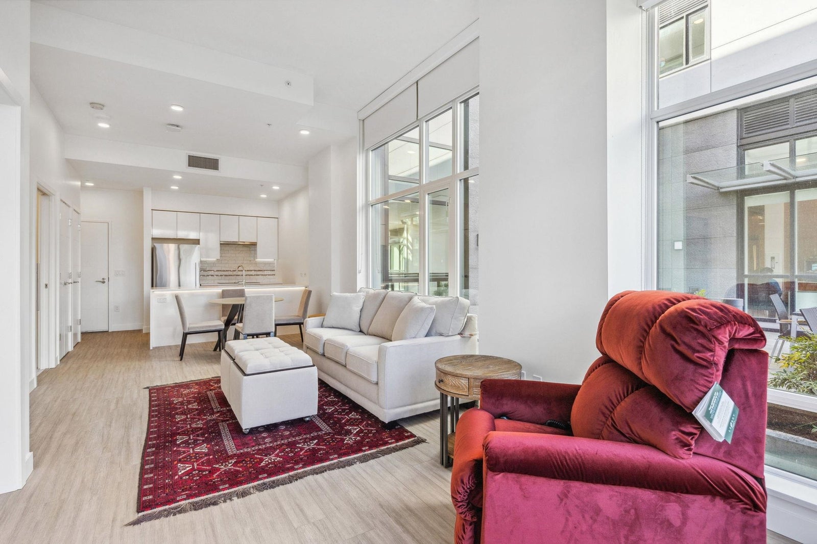 A beautiful BRAND NEW (NEVER been lived in) home (corner suite) at the pinnacle of luxury retirement living (55+), Opal by Element, the newest on Vancouver's Westside! Offering a wealth of refined amenities, services & wellness programs incl. shopping trips & fun outings, Opal is what feels like a luxury wellness retreat & a warm, vibrant & supportive community w/ super friendly, personable staff. The on-site restaurant features a delicious farm-to-table menu w/ Western & Asian options. W/ AC, this elegant home boasts a bright &open layout w/ 11'3 high ceiling & a 544 sf. gated patio, patrolled by security every night, quiet & spacious. Bosch appliances. Advanced security w/ an integrated fob system combining suite & amenity access, & 24/7 emergency response; levelled walk-in shower, etc.