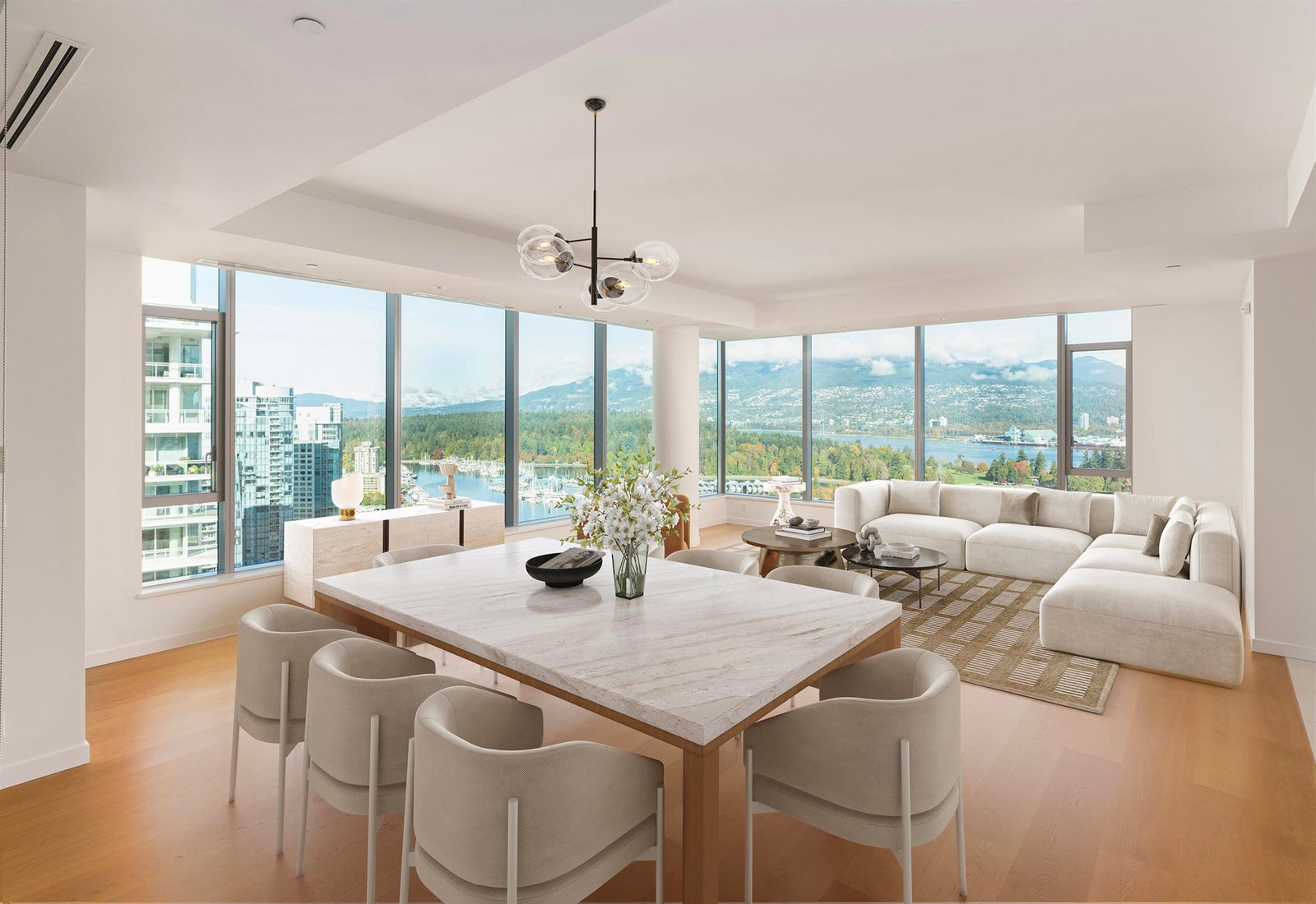 Spectacular waterfront home at the most prestigious and exclusive Three Harbour Green. Occupying half of the floor, breathtaking unobstructed views of ocean, mountains, Stanley Park, the Lions Gate bridge, Coal Harbour Marina & Park & city vistas. 10' ceiling, open layout; 3 bedrooms + huge fam room + 3.5 baths, perfect for entertaining w/ house-like spaciousness. Luxurious finishes, incl. motorized shades, Italian imported hardwood floors, Snaidero kitchen, L'O di Giotto bathrooms & MOVE closet. BONUS: a private, enclosed 3-car garage w/ an oversized storage rm inside + 2nd storage room. 2 balconies. Meticulously maintained. Resort-style amenities: 24/7 concierge, indoor pool & hot tub, sauna, steam, fitness, guest suite, squash, golf simulator, theatre, ping pong room, billiards, etc.