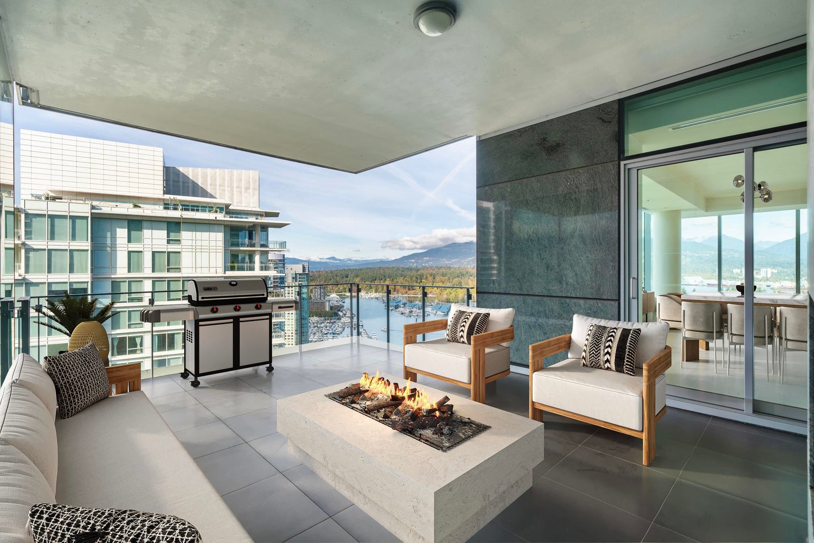 Spectacular waterfront home at the most prestigious and exclusive Three Harbour Green. Occupying half of the floor, breathtaking unobstructed views of ocean, mountains, Stanley Park, the Lions Gate bridge, Coal Harbour Marina & Park & city vistas. 10' ceiling, open layout; 3 bedrooms + huge fam room + 3.5 baths, perfect for entertaining w/ house-like spaciousness. Luxurious finishes, incl. motorized shades, Italian imported hardwood floors, Snaidero kitchen, L'O di Giotto bathrooms & MOVE closet. BONUS: a private, enclosed 3-car garage w/ an oversized storage rm inside + 2nd storage room. 2 balconies. Meticulously maintained. Resort-style amenities: 24/7 concierge, indoor pool & hot tub, sauna, steam, fitness, guest suite, squash, golf simulator, theatre, ping pong room, billiards, etc.