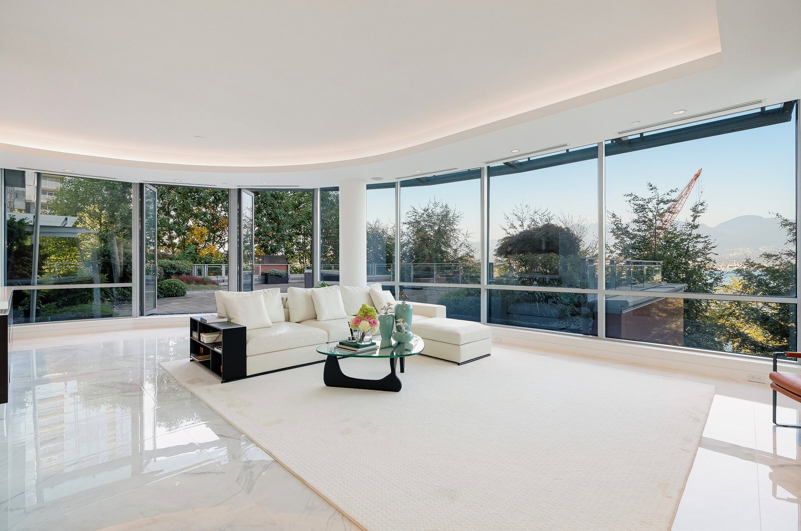 EXCLUSIVE LISTING | A grand residence with over 6,200 sq. ft. of in and outdoor luxury at the coveted north west corner with vistas to marina, Stanley Park, N.S. Mtns. 2,529 sq. ft. of 12 ft ceiling indoor space, master ensuite with fireplace & spa ensuite. Hi-tech lighting, sound, motorized blinds throughout. Italian Snaidero kitchen with Miele & subzero appliances and many more luxurious upgrades. 3,750 sq. ft. fully landscaped deck: covered dining area with gas fireplace & BBQ, pond/water feature flanked by raised sundeck. 24/7 concierge, 5 star resort amenities, 3 car garage & additional storage. This executive residence must be experienced to appreciate its distinction!